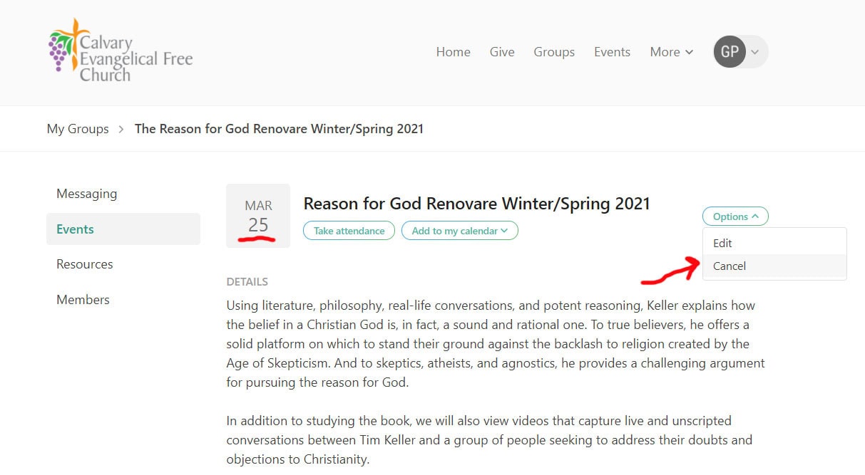 View a demo about how to manage your group using Church Center, Calvary’s attendee website and mobile app