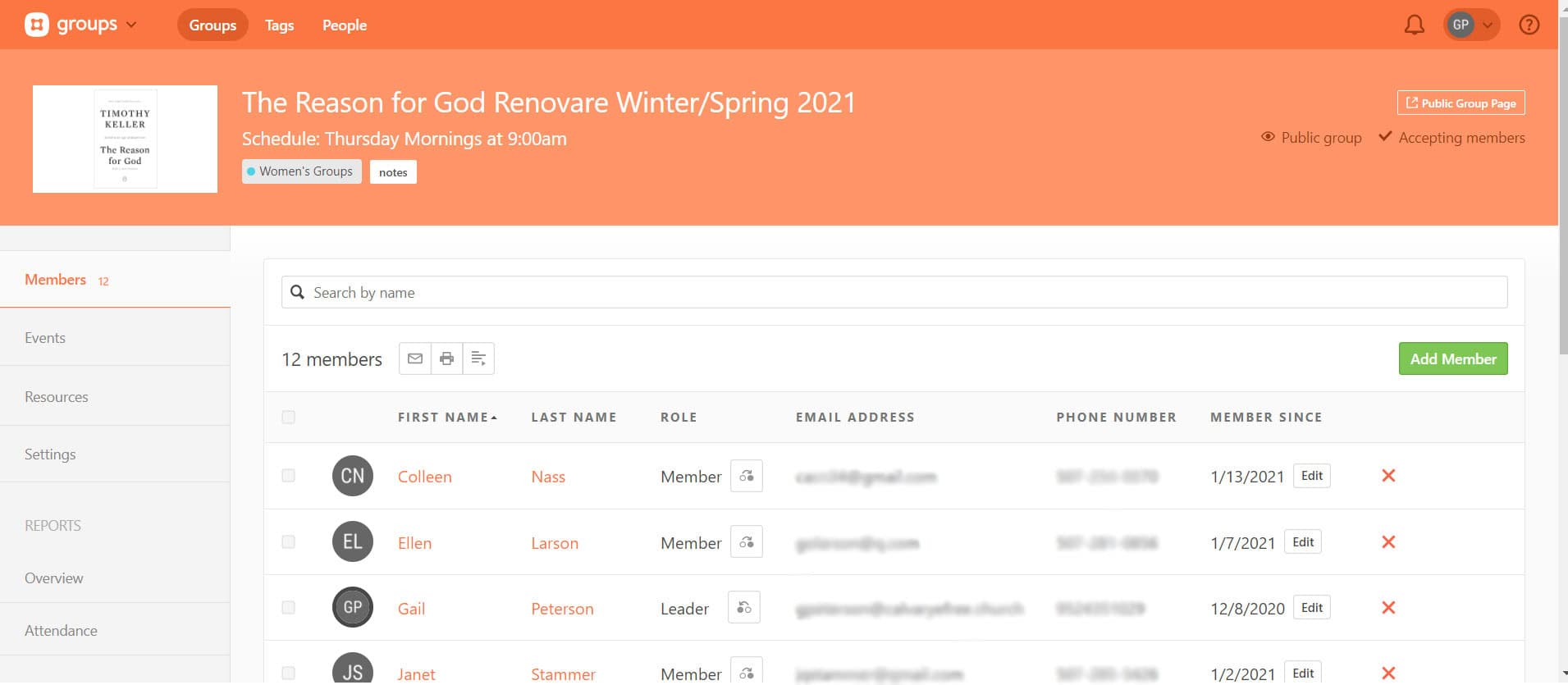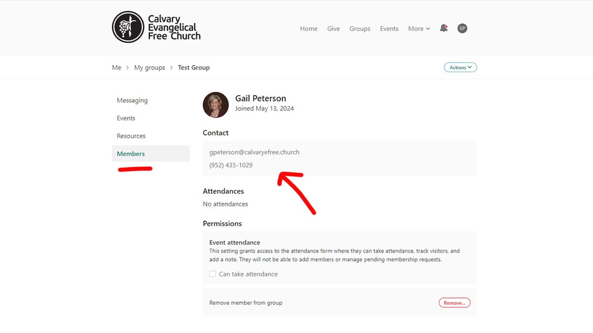 - As a leader of your group, you can view your member’s contact information in Church Center.
