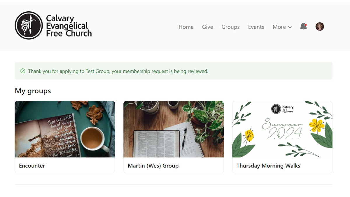 - You can direct new prospective group members to go to the calvaryefree.church home page and select the person icon in the homepage menu which is a link to Church Center. Then they can go to groups and search for your group if it is listed and select the “Request to Join” button.