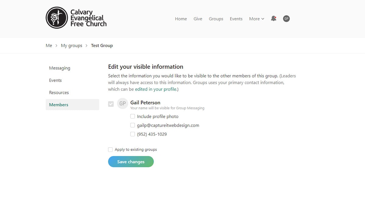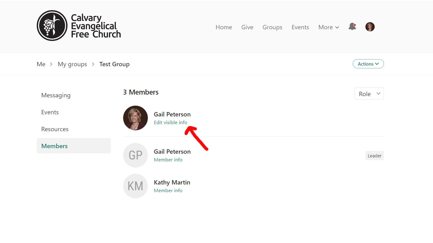 - Group members who are not leaders will not be able to see members’ contact information unless they select “Edit visible info”. To help encourage the group to connect with one another, everyone the group including the leaders can share profile photo, email and phone.